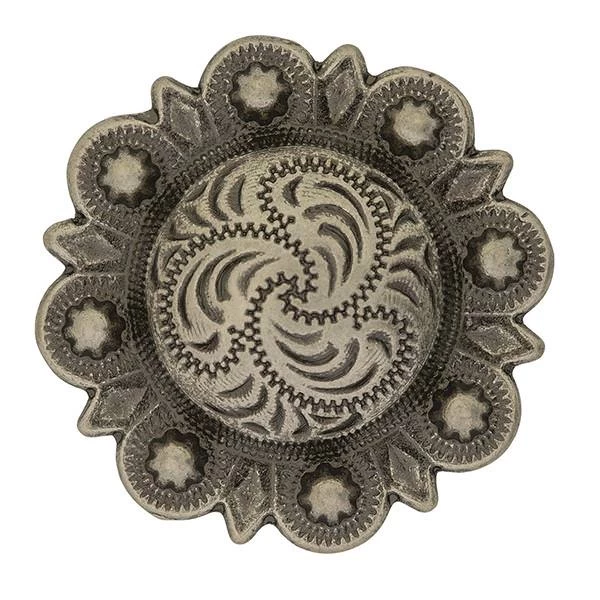 Add timeless style to your leathercrafting project with this classic concho edged with a traditional berry design.