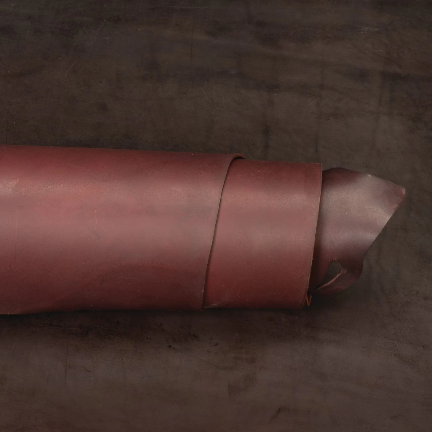 In a traditional burgundy color, this latigo leather comes in large sides for less waste. With a subtle touch of sheen, this leather makes beautiful belts, pet products, tack and more. Our friends at Hermann Oak painstakingly veg tan this leather to their exacting standards and hot stuff it for clean, smooth edges when cut.