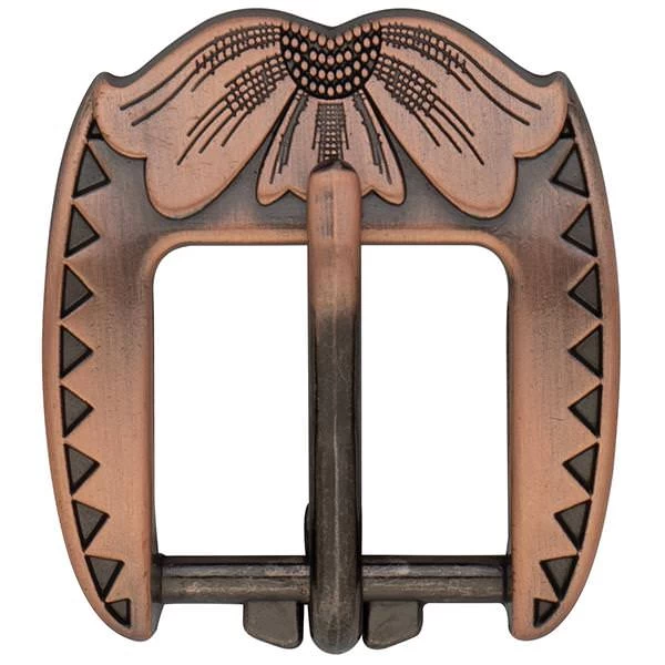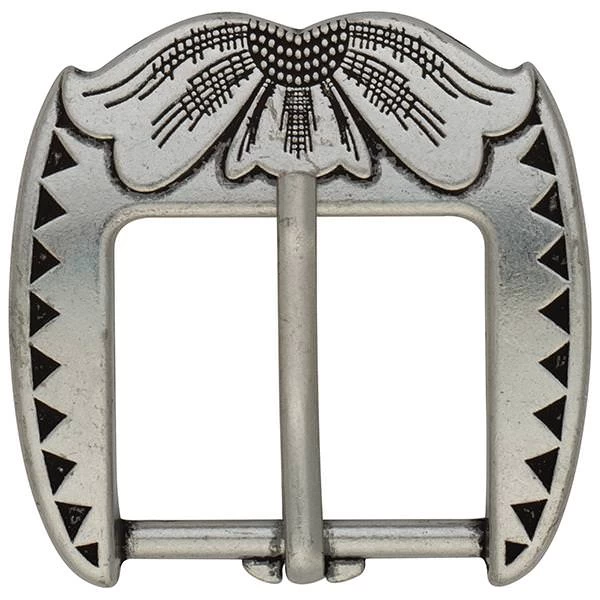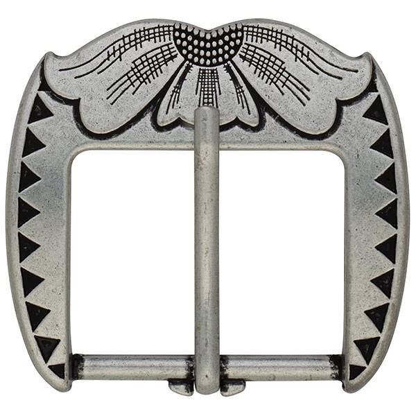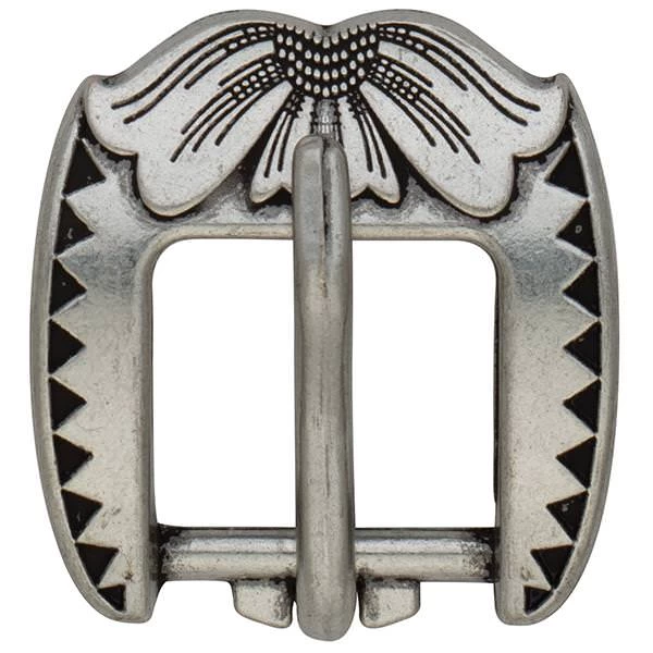 - Give your leather project that perfect finishing touch with this buckle engraved with a pretty floral accent and a zigzag detail on the border for elevated style