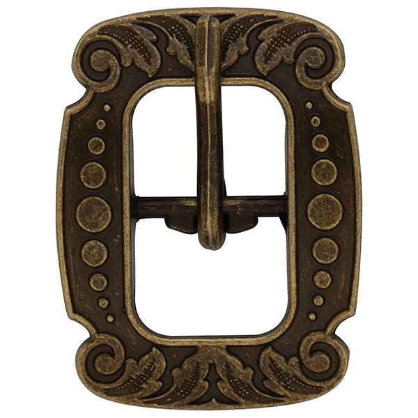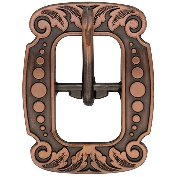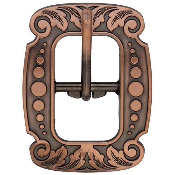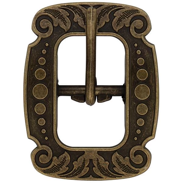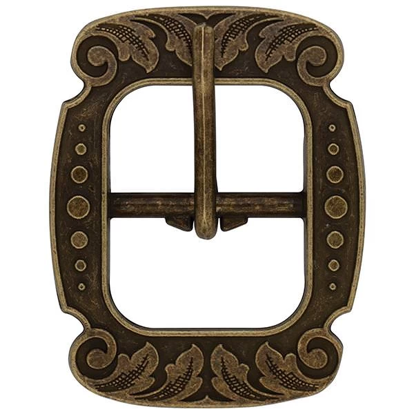 - Vintage-style center bar buckle is engraved with a versatile floral design that looks great on a wide range of leather projects