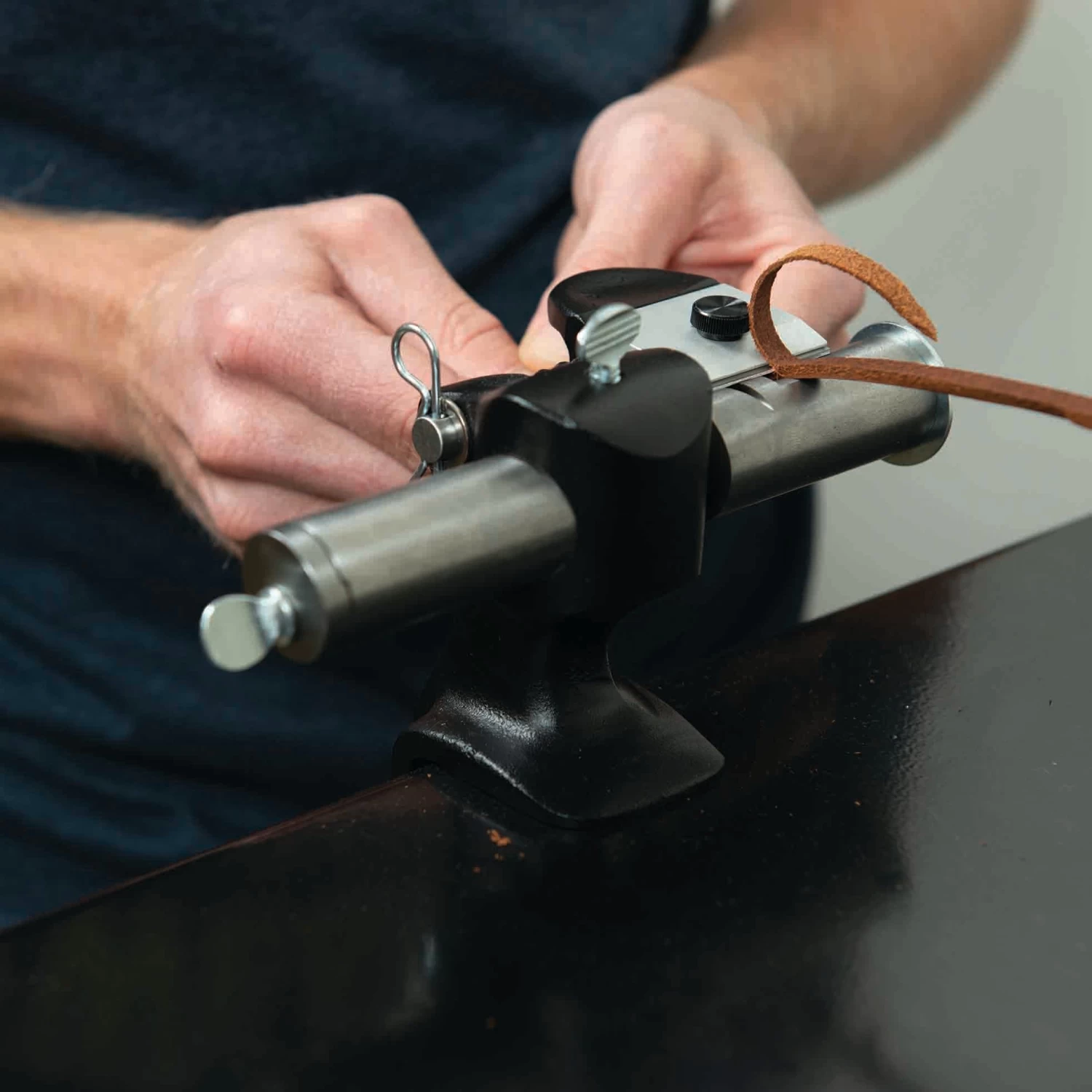 If you want to cut and bevel your own leather and rawhide laces for braiding projects, the Lace Master is a great tool to have on hand. Easy to mount to your workbench, this ingenious design will increase your productivity while allowing you to cut from discs or strips. As an added bonus, the Lace Master comes with 100 blades and uses budget-friendly straight razor blades that are easy to source to ensure you always have a sharp blade for this lace-cutting workhorse! Cutting rawhide laces and leather laces has never been easier!